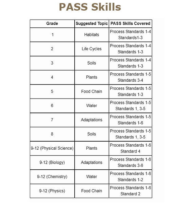 All programs at the Reserve are designed to be as informative as possible. We try to cover as many of the PASS skills and Benchmarks for Excellence as possible. We realize that our 100-acre classroom is the reason you take time away from your regularly scheduled education programs, so we spend the majority of your available time outside. We also like to have some interactive educational activities, so the students often "role play". This allows the students to see the information in a different format. Understanding that all students learn in different ways, we will also be trying to incorporate some "hands-on" activities where appropriate. If you do not see a topic or PASS skill that fits your needs, we will be glad to customize a program for your group.